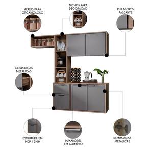Com seu design suspenso, este Armário confere um toque sofisticado e é perfeito para otimizar espaços reduzidos, sem abrir mão da praticidade. O modelo possui cinco portas e uma gaveta, além disso, essa Cozinha Compacta conta com quatro nichos que oferecem um espaço especial para seus utensílios, enquanto as corrediças metálicas facilitam o acesso e tornam o preparo das refeições ainda mais ágil. Os puxadores em alumínio não só acrescentam um aspecto contemporâneo, como também asseguram durabilidade. O Armário de Cozinha é a combinação perfeita de estilo e funcionalidade para transformar seu espaço.