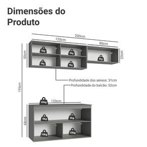 52 cm de profundidade no balcão e 31 cm nos aéreos