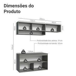 - 52 cm de profundidade no balcão e 31 cm nos aéreos