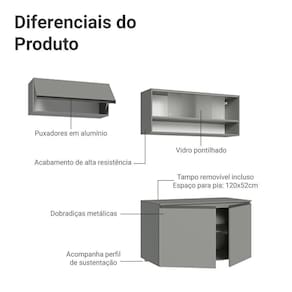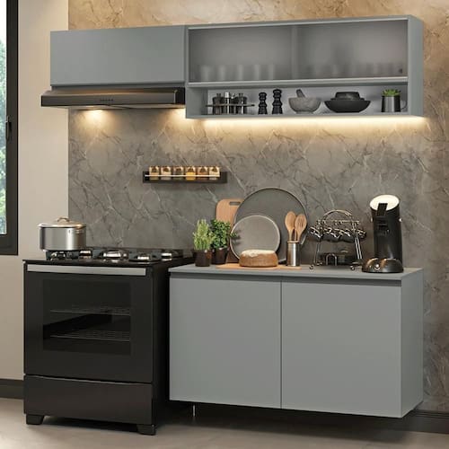 Nome do Simples no Fornecedor: Armário de Cozinha Compacta Suspenso 200cm Cinza Nice Madesa 07