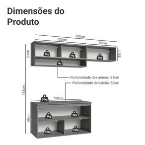 52 cm de profundidade no balcão e 31 cm nos aéreos