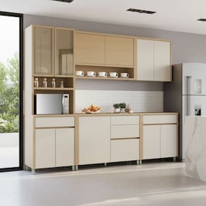 MODELO: Armário De Cozinha Completa 100% Mdf 11 Portas 5 Gavetas Cléo Carvalho/Off White Nesher