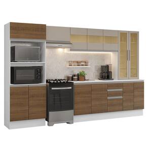 A Cozinha Smart, com 310 cm de largura, é ideal para quem busca mais espaço. Seu diferencial fica por conta da cristaleira com vidro reflex, que adiciona sofisticação e praticidade ao ambiente.