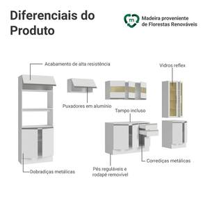 Fabricada em 100% MDF, a linha Smart garante durabilidade e alta resistência. Toda a cozinha é em branco, proporcionando um visual clean e elegante. A cristaleira e o aéreo possuem portas em vidro reflex, permitindo exibir suas louças e utensílios, mantendo o ambiente sempre arrumado e acessível.