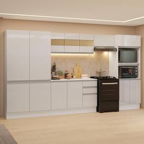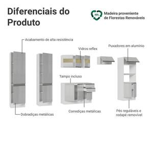 Conta com pés reguláveis e rodapés removíveis de fácil encaixe. O acabamento Branco Brilhante e as portas com vidro reflex valorizam ainda mais o ambiente.
