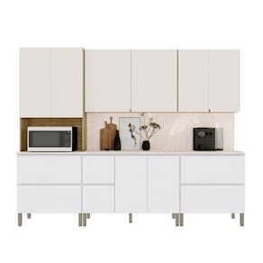 - Itens Inclusos: 1 Paneleiro, 1 Balcão de cozinha 0,80m, Tampo Com Painel, 1 Armário Aéreo 0,80m, 1 Balcão de cozinha 1,20m, 1 Armário Aéreo 1,20m, 1 Manual de montagem, 1 Kit Parafusos