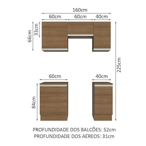 - 52 cm nos balcões e 31 cm nos aéreos