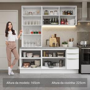 E para completar, o acabamento da estrutura é branco e o das portas e frentes é na coloração branco veludo.