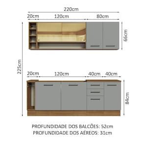 - 52 cm de profundidade nos módulos inferiores e 31 cm nos aéreos