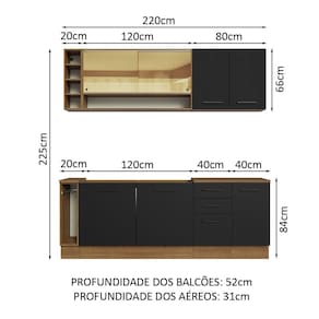 - 52 cm de profundidade nos módulos inferiores e 31 cm nos aéreos