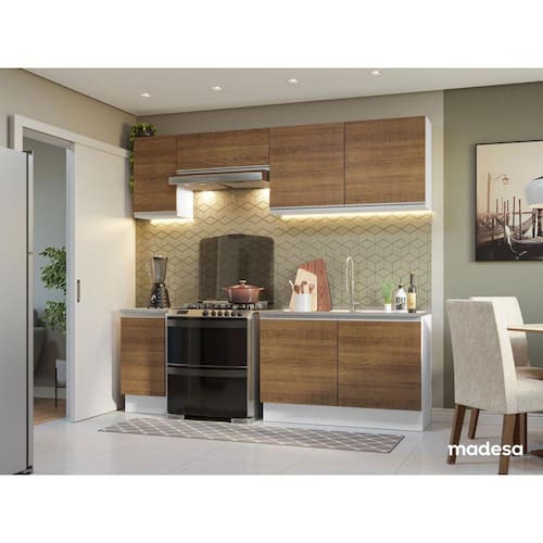 Para tornar sua cozinha um espaço mais acolhedor e funcional, uma excelente opção é o Armário de Cozinha Completa da linha Glamy da Madesa.