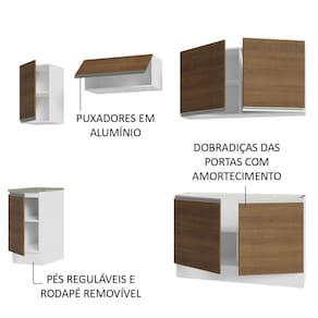 Com fabricação pensada para garantir a máxima durabilidade do produto, o móvel possui puxadores em alumínio, portas possuem um fechamento suave, pés reguláveis em PVC e rodapé encaixado em MDP, que pode ser facilmente removido.