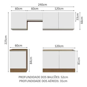 - 52 cm nos balcões e 31 cm nos aéreos