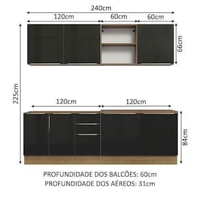- 60 cm de profundidade nos balcões e 31 cm nos aéreos