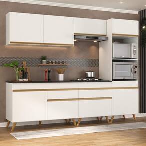O Armário de Cozinha Completa 252cm Veneza Multimóveis V3713 tem um excelente custo benefício e um amplo espaço interno. Produzido em MDP com acabamento acetinado (cerca de 20% de brilho), que garante maior durabilidade e resistência, possui corrediças metálicas (mais leveza no manuseio), pés retrô em polipropileno, que deixam o ambiente mais estiloso, puxadores em ABS e tampo em MDP 15mm com pintura de alta resistência. Os módulos são individuais e você pode montar da maneira que se adaptar melhor ao seu ambiente. O balcão possui tampo removível (compatível com pia de 120 cm). Para deixar sua cozinha mais bonita e completa possui compartimento para utensílios mais altos, balcão para cooktop, além de espaço para forno e microondas.