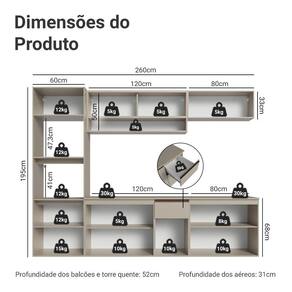 - 52 cm de profundidade nos balcões e 31 cm nos aéreos