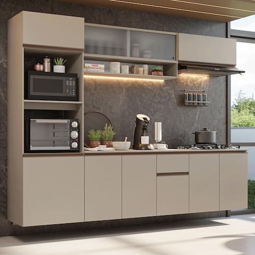 A Cozinha Completa da linha Nice da Madesa vai proporcionar conforto e modernidade para o seu lar. Com 260 cm de largura, essa cozinha suspensa é a escolha ideal para quem busca funcionalidade e estilo.