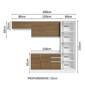 - 52 cm de profundidade no balcão e no paneleiro e 31 cm nos aéreos