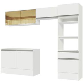 Construída com materiais de qualidade, conta com puxadores em perfil total de alumínio, dobradiças e corrediças metálicas, além de rodapé frontal fixo, proporcionando maior segurança e sustentação.