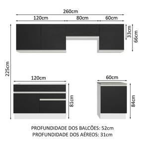 - 52 cm nos balcões e 31 cm nos aéreos