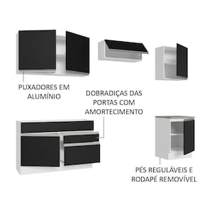 Com foco na qualidade e durabilidade, esse móvel apresenta puxadores de alumínio, portas com fechamento suave, gavetas com corrediças telescópicas, pés ajustáveis em PVC e rodapé em MDP, que pode ser facilmente removido.