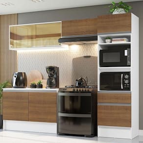 Uma cozinha moderna e versátil, pensada para trazer qualidade e funcionalidade para sua casa. Conheça o Armário de Cozinha Completa da linha Diamante da Madesa.