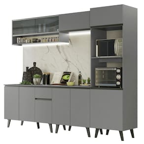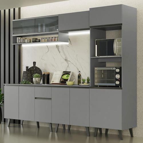 Super espaçoso e muito bem dividido, este móvel é totalmente modulado, permitindo que você organize os armários e balcões conforme a melhor disposição para o seu ambiente. Assim, se torna praticamente uma cozinha planejada.