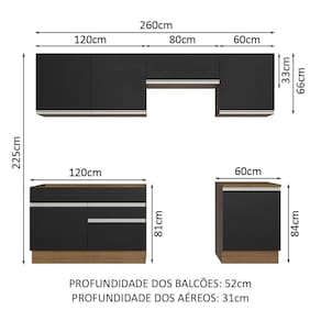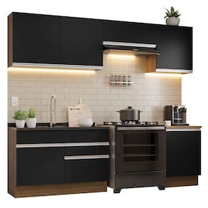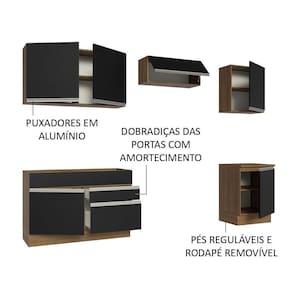 Para completar, o acabamento da estrutura é no padrão amadeirado Rustic e o das portas e frentes é preto. Feito em Pintura Poliéster ecológica, que consiste na aplicação de 7 camadas de proteção resistentes a álcool, água e calor.