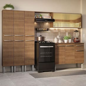 Uma cozinha moderna e completa, ideal para ambientes compactos, com foco na organização e no aproveitamento dos espaços. Conheça este modelo da linha Emilly da Madesa.
