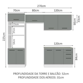 - 52 cm de profundidade no balcão e na torre e 31 cm nos aéreos