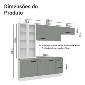 - 52 cm de profundidade nos balcões e 31 cm nos aéreos