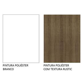 O acabamento da cozinha combina os tons branco e amadeirado Rustic. É feito em Pintura Poliéster, com 7 camadas que protegem o móvel dos efeitos do álcool da água e do calor.
