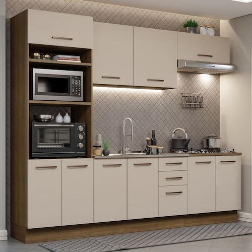 COR: Crema | Garantia: 3 meses contra defeitos de fabricação | Dimensões - Altura: 225 cm | Dimensões - Largura: 270 cm | Dimensões - Profundidade: 52 cm | Produto: Cozinha | Marca: Madesa | Peso aproximado: 169 kg | Material: MDP | RBN: Casa/Móveis/Móveis de Cozinha | Estado de Origem: RS | Material para Filtro: MDP | Conteúdo da embalagem: 1 Cozinha Completa | Instruções/Cuidados: Utilize um pano limpo, levemente umedecido e seque em seguida a superfície. Não usar produtos químicos ou abrasivos para a limpeza. Recomendamos polir seu móvel com lustra-móveis duas a três vezes por ano. | Quantidade de gavetas: 3 | Quantidade de portas: 10 | Produto precisa de Montagem?: Sim | Inclui tampo: Não | Altura do Produto com Embalagem (cm): 80.1 | Largura Produto Com Embalagem (cm): 61.2 | Comprimento Produto Com Embalagem (cm): 229.1 | Peso Produto Com Embalagem (Kg): 169.1 | Descrição do Tamanho: 225 cm x 270 cm x 52 cm | Nome do Simples no Fornecedor: Armário de Cozinha Completa 270cm Rustic/Crema Agata Madesa 01 | Contato do Fabricante: contato@madesa.com | Fabricante: Madesa | Tipo de móveis de cozinha: Armário/Balcão Cor: Rustic/Crema