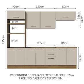 - 52 cm de profundidade nos módulos inferiores e 31 cm nos aéreos