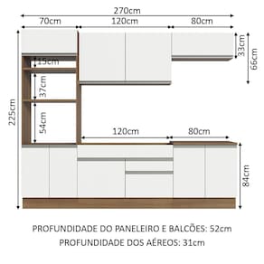 - 52 cm de profundidade no balcão e na torre e 31 cm nos aéreos