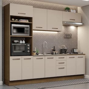 Por se tratar de uma cozinha planejada, é possível organizar as peças conforme a necessidade do seu ambiente.