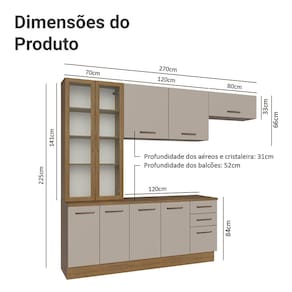 - 52 cm de profundidade nos balcões e 31 cm nos aéreos