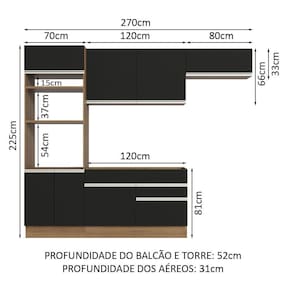- 52 cm de profundidade no balcão e na torre e 31 cm nos aéreos