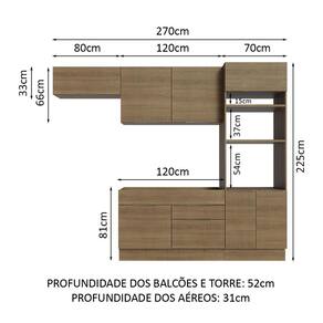- 52 cm de profundidade no balcão e na torre e 31 cm nos aéreos