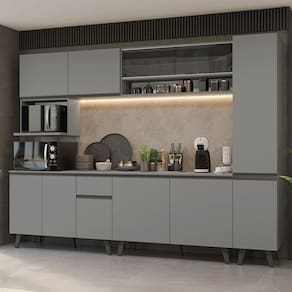 A Cozinha Completa é a solução perfeita para quem busca praticidade e organização. O armário com vidro neutral traz um toque de elegância ao ambiente enquanto o módulo aéreo projetado para acomodar fornos ou micro-ondas traz mais funcionalidade.