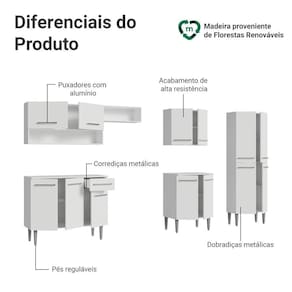 Qualidade acessível: Com excelente custo-benefício, fabricada com materiais duráveis, garantindo maior vida útil. Possui corrediças e dobradiças metálicas e pés ajustáveis em PVC.