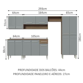 - 44 cm profundidade nos balcões e 27 cm nos aéreos