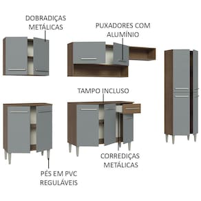 São diversos módulos avulsos, que podem ser organizados conforme a necessidade do seu ambiente. Além disso, o espaço interno é ideal para organizar utensílios, louças, eletros e muito mais.