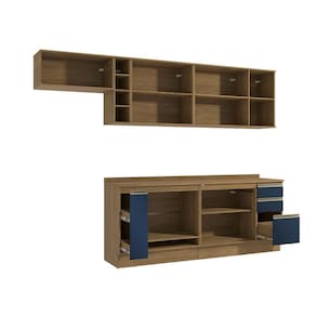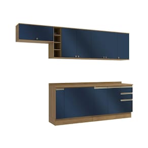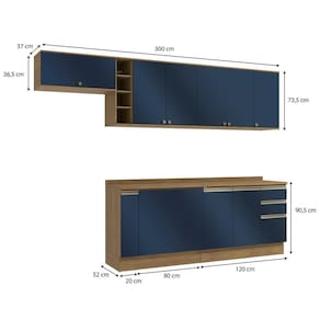 Acabamento: Pintura Fosco / Pintura Touch | Cor: Nogueira/Azul Profundo | Corrediças: Telescópicas | Dobradiça: Com Amortecimento / Sem Amortecimento | Garantia: 3 meses para defeito de fabricação | Gavetas: Internas | Matéria-prima: MDF / MDP | Medidas internas: 65 x 40 cm | Peso suportado por cada gaveta: 6 Kg | Peso suportado por cada prateleira: 7 kg | Peso suportado por gaveta: 6 kg | Puxadores: Alumínio / Metálicos / Puxadores de Metal e de Alumínio | Quantidade de gavetas: 2 / 3 | Quantidade de portas: 1 / 2 / 3 | Quantidade de prateleiras: 1 / 2 / 5 | Sistema de montagem: Parafuso Philips | Tipo de porta: Bater | Duração da garantia: 3 meses | Tipo de garantia: Garantia do fabricante | Montagem: Necessita montagem | Tipo de móveis de cozinha: Combo de móveis de cozinha | Requer montagem: Sim