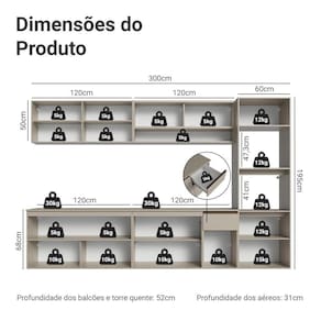 - 52 cm de profundidade nos balcões/torre quente e 31 cm nos aéreos