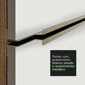 Um grande diferencial desta versão são as portas e frentes das gavetas, que possuem revestimento metálico nas bordas e acabamento em Branco Veludo, uma pintura especial e sofisticada, com toque liso e aveludado.