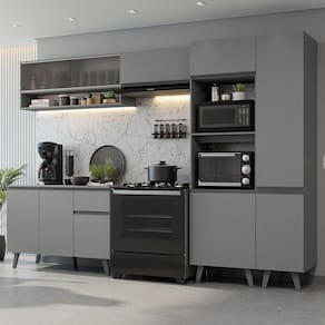 Um grande diferencial é que esta cozinha é planejada, já que possui módulos avulsos que podem ser organizados conforme a necessidade do seu ambiente.