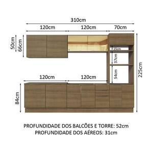 - 52 cm de profundidade nos balcões e na torre e 31 cm nos aéreos