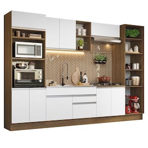Armário de Cozinha Completa 330cm Rustic/Branco Glamy Madesa 03 - Marrom