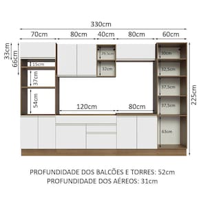 - 52 cm nos módulos inferiores e 31 cm nos aéreos